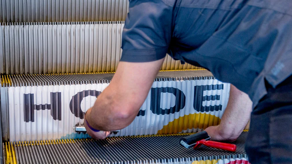 There are always several concerns, including any issues with voiding the escalator warranty, visibility of branding when the escalator has high occupancy, downtime of escalators during the cleaning, installation and removal process.